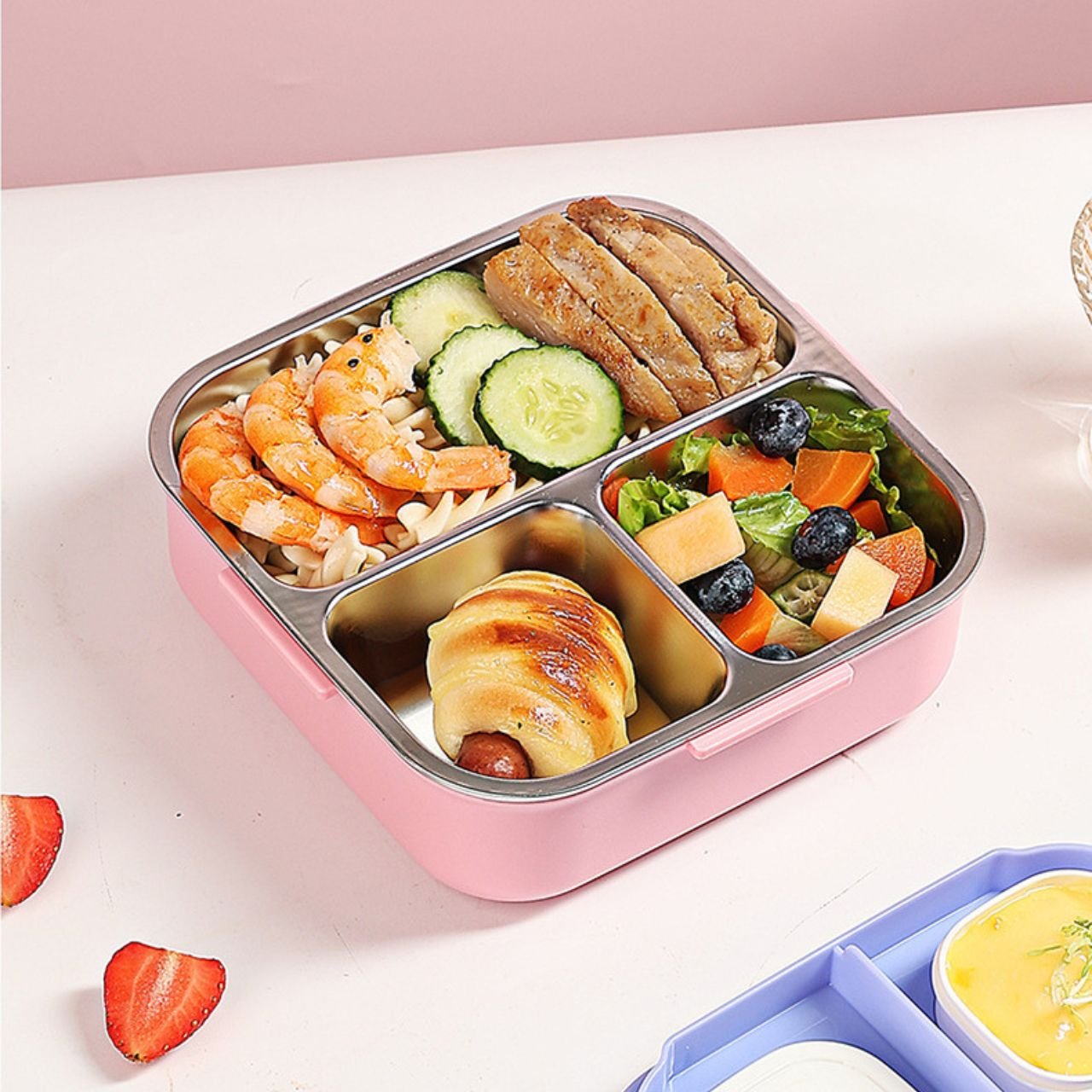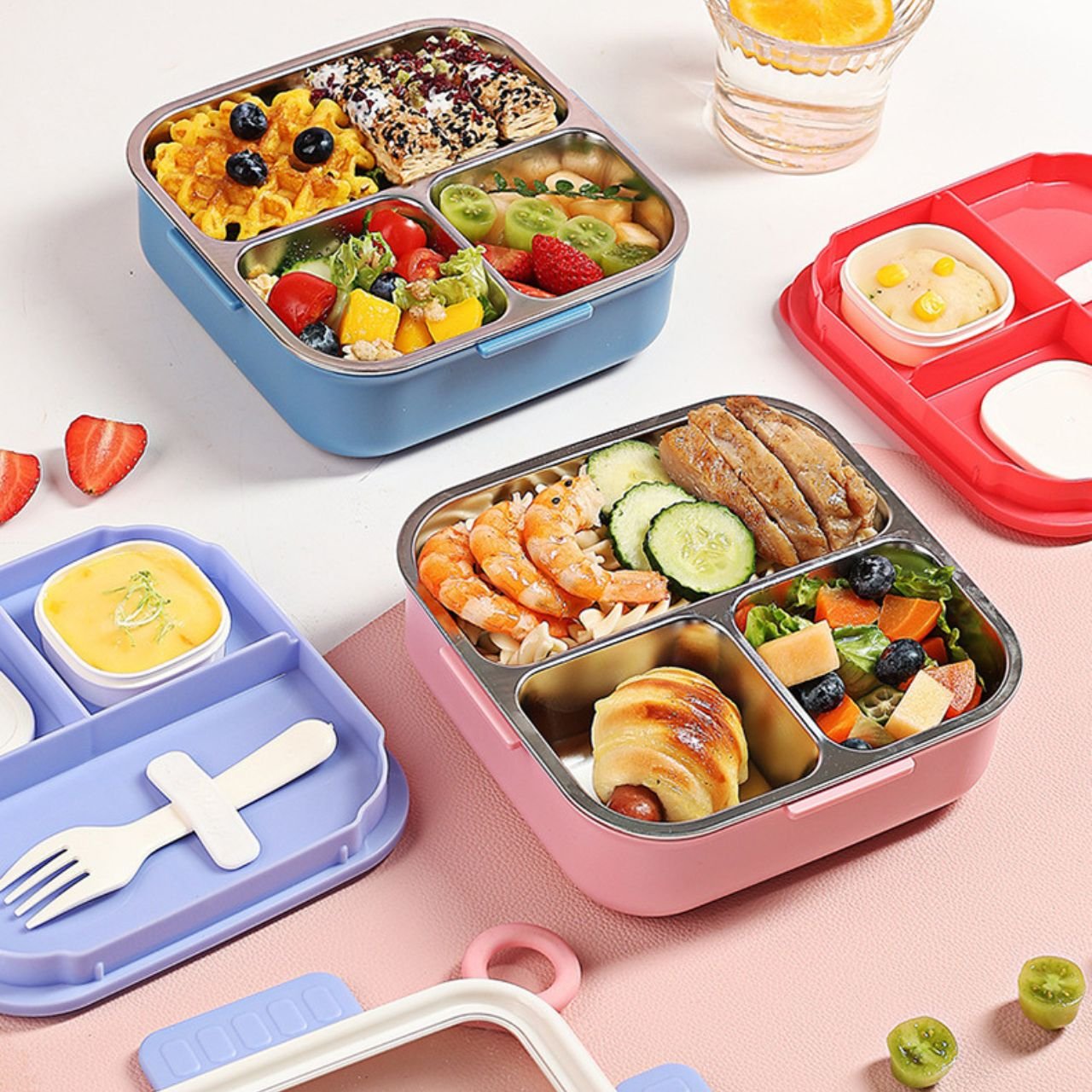 The secure, leakproof lid with strong locks clips ensures your food stays safely inside, preventing spill and mess in your bag. In addition, the compact and portable design makes it ideal for school, work, picnic, or travel, so, pack your favorite meals with confidence and enjoy a hassle free lunch experience.