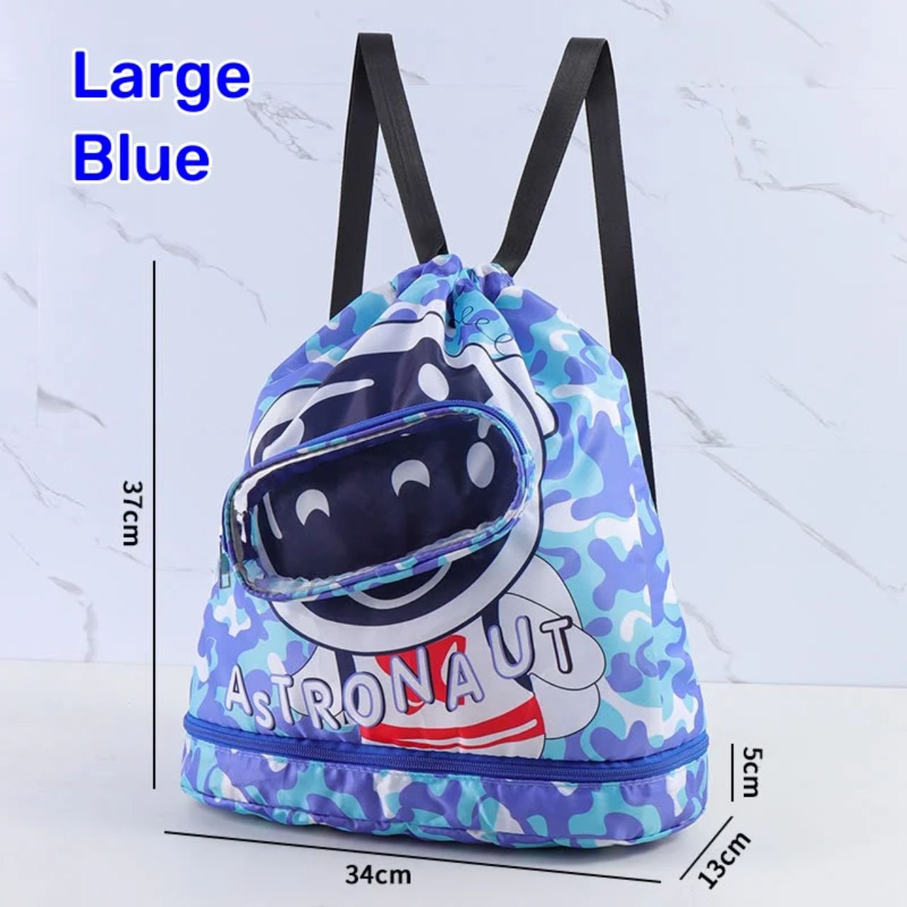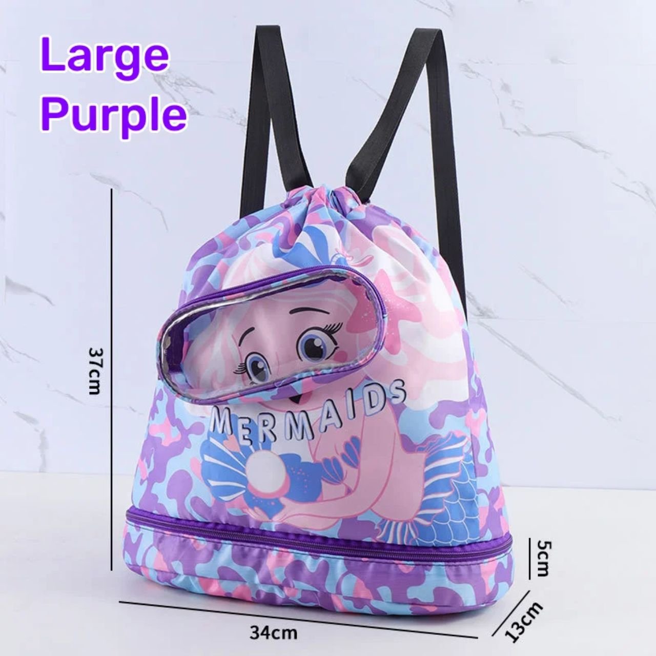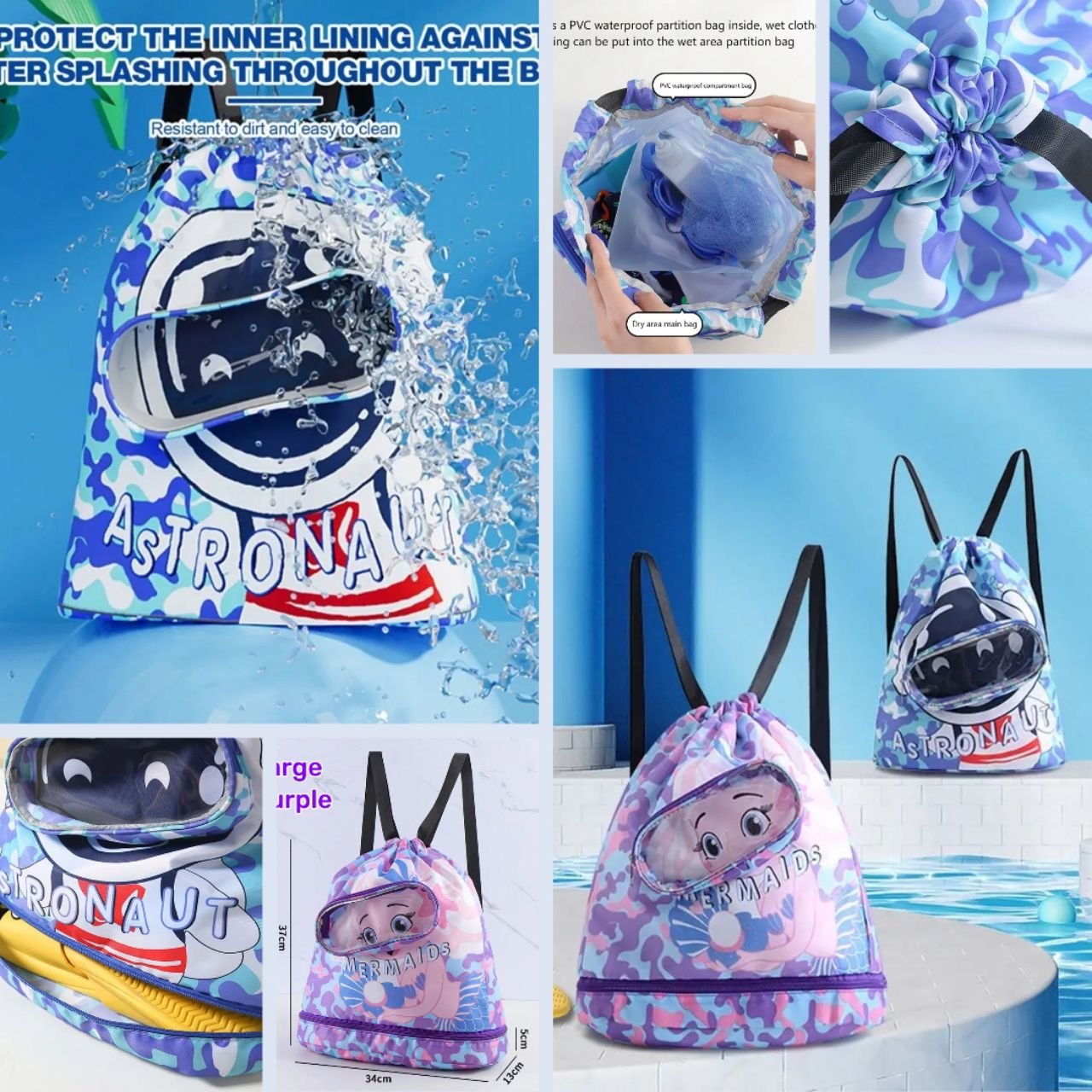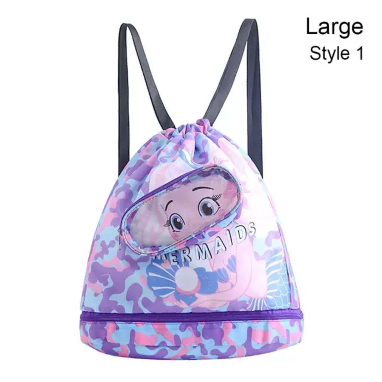 Introducing our cartoon print kids shoulder swimming bag-a splash of fun and  functionality designed especially for your little ones’ aquatic adventures. This beach bag, adorned with playful assorted prints and colors, is not just a bag. It’s a statement piece for your child’s summer style. Packed with thoughtful features and ready for action, this swim bag is a must-have for every young water enthusiast.