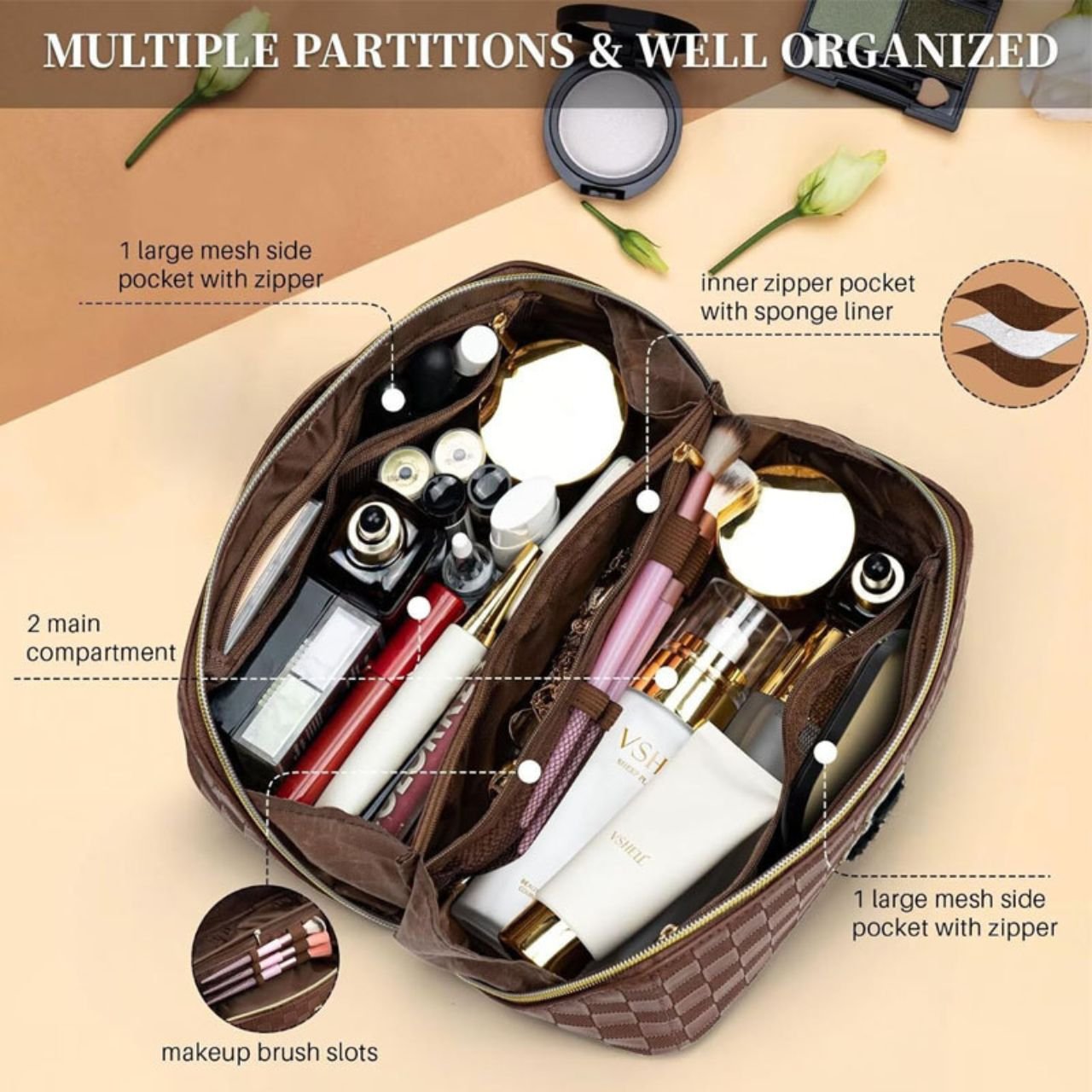 • Spacious Interior: Ample room for all your makeup essentials.