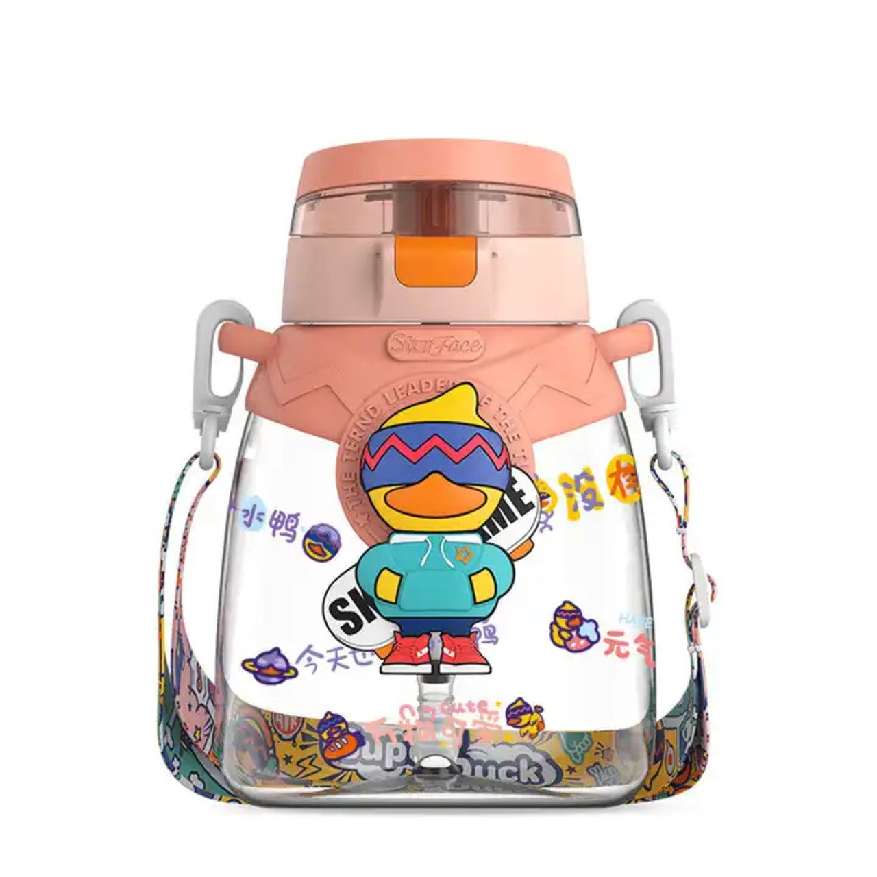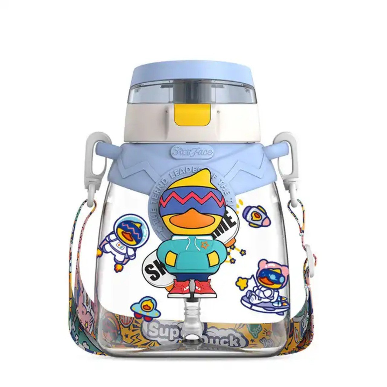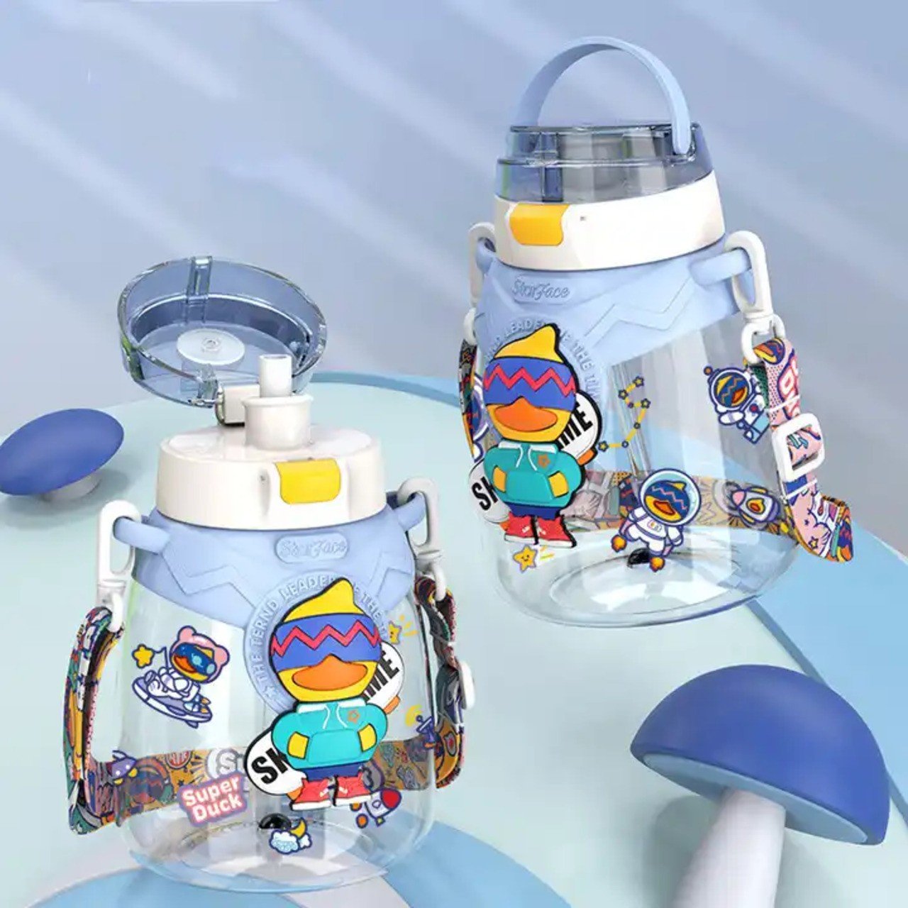 Plastic Kids Sipper with Strap and Straw | 1200 Ml | Leak-Proof | Attachable Rubber Toy | Assorted Colors | Box Packing