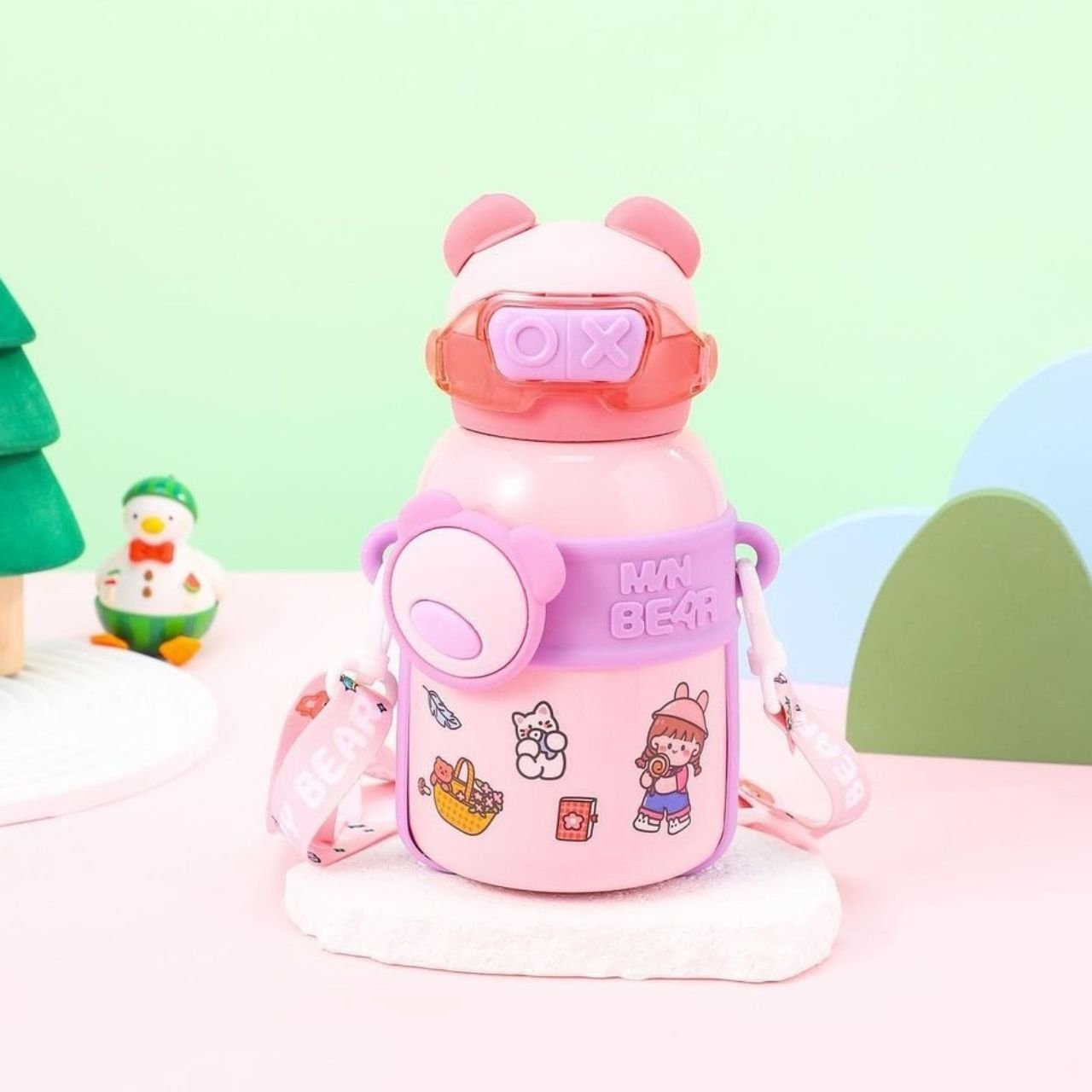 Introducing stainless steel insulated ox bottle with straw. It has an adorable rubber toy sticker on the side. This sipper’s generous 500 ml capacity make it ideal for preserving beverage hot or cold for extended periods time.
