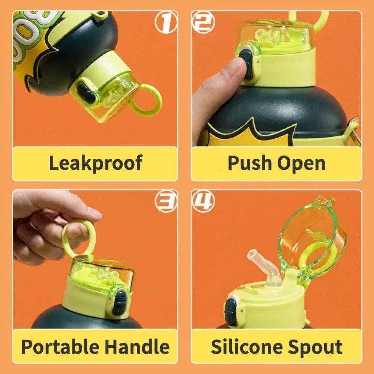 Having capacity of 520 ml this insulated sipper have anti slip silicone grip, strap and leak proof lid. perfect for birthday return gift. unique item for your kids. airtight leak proof with suction nozzel. Available in different colors and comes in printed box packing
