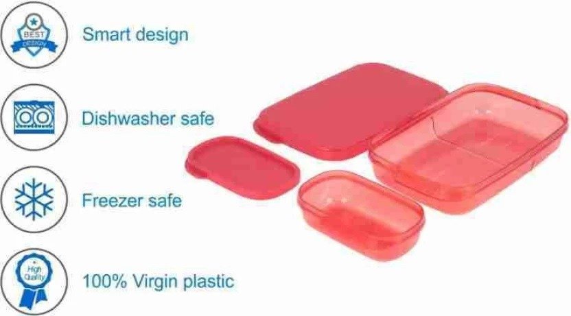 Easy to clean and dishwasher safe. Lunch box with airtight lids is made using only the best quality material that are European food grade virgin raw material and following the most stringent of International Standards.