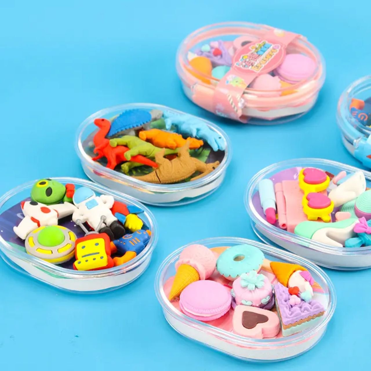 Featuring an assortment of vibrantly colored erasers adorned with adorable characters, this set is sure to capture your child’s attention and transform their schoolwork or art projects into an engaging adventure.